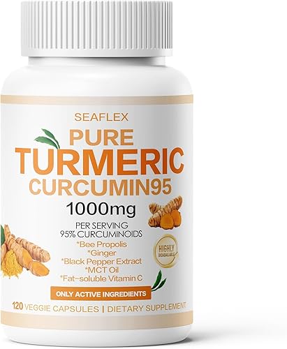 Curcumina de cúrcuma 95 1000 mg - 95% suplemento de complejo de cúrcuma con propóleo de abeja (120 cápsulas)