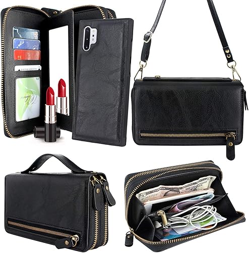 Funda especial para teléfono compatible con Samsung Galaxy Note 10+ Plus/Galaxy Note 10 Plus 5G (2019). No es compatible con Galaxy Note 10, no para ningún otro teléfono. Está diseñado para tus necesidades personales. Lleva esta cartera, sin necesidad de otras bolsas. 8 ranuras para tarjetas y espejo integrado y 3 bolsillos con cremallera. Suficiente espacio para dinero en efectivo, monedas, cambios, recibos, lápiz labial, llave, cable USB, auriculares u otras cosas pequeñas, incluso un teléfono de tamaño pequeño. Funda magnética desmontable con corte preciso, da a tu teléfono una alta protección y soporta carga inalámbrica. Edge TPU se combina con la PC integrada para proteger tu teléfono de caídas, arañazos y golpes. La cadena de hombro cruzada, el asa de mano y el cordón te dan 3 opciones para llevar.