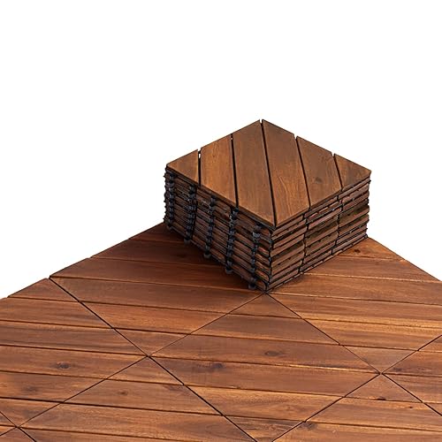 BEEFURNI patio decking interlocking deck tiles are an excellent choice for outdoor flooring. These outdoor floor tiles for patio are designed to meet various needs, from patio tiles outdoor to balcony flooring outdoor waterproof and porch flooring outdoor waterproof spaces. The wood interlocking deck tiles feature a diagonal pattern design that enhances both drainage and visual appeal. With a snap together decking system, installation is quick and simple, making it perfect for DIY patio deck tiles projects. These interlocking deck tiles outdoor can be easily customized using a saw or scissors to fit over concrete, flat surfaces, or even outdoor patio tiles over grass with proper support. Crafted from acacia hardwood, these decking tiles outdoor waterproof offer durability and all weather resistance. Ideal for patio flooring tiles, balcony deck flooring, and outdoor platform deck for yard setups. Each pack includes 10 tiles in 12 x 12 inch size, suitable for small patio floors, balcony areas, or porch tiles outdoor waterproof applications. The slatted structure ensures fast drainage and keeps the surface dry. Upgrade your outdoor flooring with these interlocking deck tiles outdoor waterproof for a clean and modern look.
