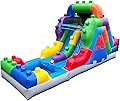 HeroKiddo Tobogán acuático inflable de 12 pies con piscina, 22 pies de largo, vinilo de PVC 100% de grado comercial, diversión reforzada en húmedo y