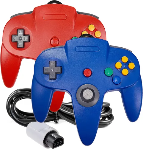 Cuenta con diez botones, un "Control Stick" analógico y una almohadilla direccional de 8 vías, todo colocado en una forma de "M" Compatible con 64. Controlador perfecto para Mario Kart, Perfect Dark y muchos otros 64 juegos clásicos Función de Rumble Pak y tarjeta de memoria. Proporciona retroalimentación de fuerza mientras juegas videojuegos. Mejora la experiencia de juego. Nota: este controlador no contiene tarjeta de memoria y paquete de Rumble en el paquete, necesita comprar por separado Color: negro, gris, azul, rojo, amarillo, naranja transparente, verde transparente, azul transparente. Longitud del cable: aprox. 6 pies. Contenido del paquete: 2 controladores Producto de terceros, no controlador original 64, pero no hay diferencia en la calidad de los controladores originales