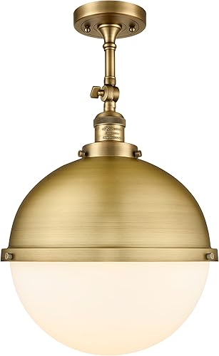 One Light Semi-Flush Mount from the Franklin Restoration collection Height: 21.75 inches Width: 12.88 inches Light Type: Semi-Flush Mount Finish: Brushed Brass Safety Rating: Damp and