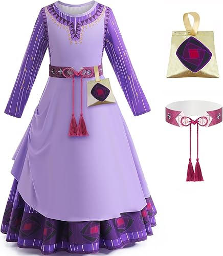 JOURPEO Disfraz morado para niñas, vestido de fiesta de cosplay de Halloween con accesorios
