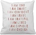 Funda de almohada bohemia con texto en inglés "I Am Kind Smart Confident Brave Loved Loved - Funda de cojín decorativa de 18 x 18 pulgadas, diseño