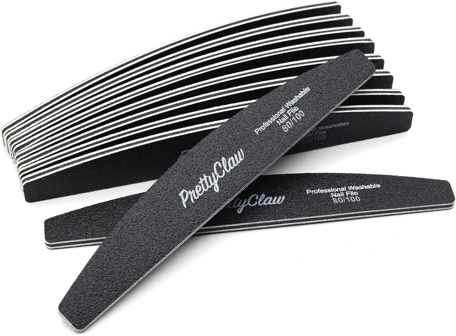 PrettyClaw 10 limas de uñas profesionales de grano 80100, color negro, media luna, limas de uñas acrílicas de centro de plástico, tablero de