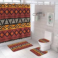 Juego de 4 piezas de accesorios de baño de tela de barro africano con cortina de ducha y alfombras, cortinas de ducha étnicas afrocéntricas tribales