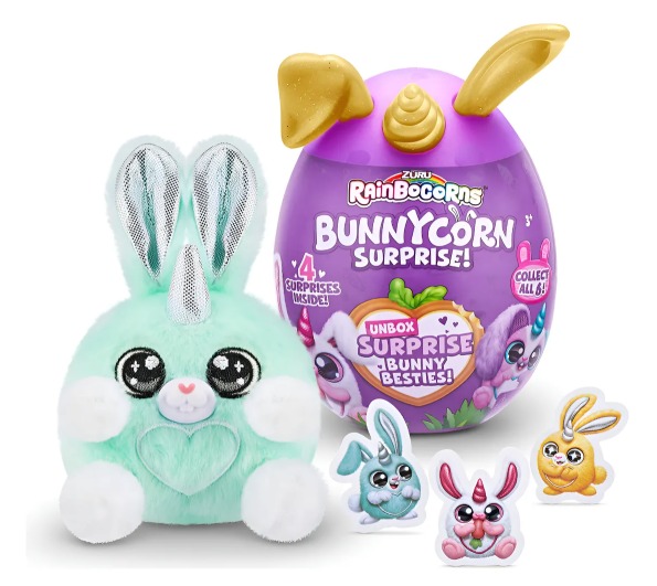 Incluye 4 sorpresas como stickers, accesorios y un tierno peluche coleccionable. 🌈🧸