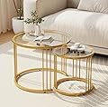 Garden 4 you Mesa de Centro Anidable, Juego de 2 Mesas de Centro Redondas de 23.6 Pulgadas, Mesa Anidable de Vidrio con Marco de Metal, Mesas de
