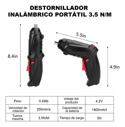 Se entrega de 24 a 48 horas - “Kit de Destornillador Eléctrico: Precisión y potencia en la palma de tu mano” La herramienta esencial para hacer cualquier reparación de forma rápida y sin esfuerzo. Beneficios Clave • Compacto y potente: Con el equilibrio perfecto entre portabilidad y fuerza para todas tus tareas.• Multifuncional: Incluye puntas intercambiables de alta calidad para adaptarse a tornillos de distintos tipos y tamaños.• Carga rápida y duradera: Batería de larga duración con carga rápida, ideal para usar en cualquier momento.• Ergonómico y ligero: Diseñado para reducir la fatiga y ofrecer un agarre seguro en cualquier posición. Características del Producto • Materiales: Acero inoxidable y mango antideslizante para mayor durabilidad y precisión• Batería: Carga en solo 1 hora, ofreciendo hasta 4 horas de uso continuo• Accesorios: Incluye 30 puntas intercambiables para máxima versatilidad