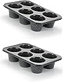 Monfish 2 piezas de molde para magdalenas jumbo de 6 tazas de acero al carbono con revestimiento antiadherente de piedra negra, 3.5 pulgadas de