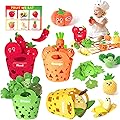 Baby Sensory Toys - Plush Color Sorting Fruit Veggie Baby Toys 6-12 Months, Pretend Play Food with Rattle Crinkle for Toddlers 1-3, Birthday