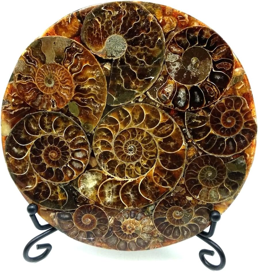 Amonita natural Cristal fósil Rebanada de muestra mineral Tamaño del diámetro: 4.3″(110mm),Grosor: 0.19-0.28″(5-7mm) La imagen es solo para tu referencia, la forma y el color de las piedras que recibas variarán un poco de la imagen. La amonita natural, todos son únicos. Es ideal para colección o decoración del hogar
