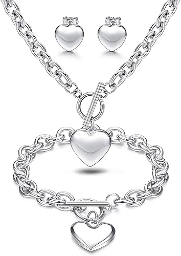 Pregunta sugerida sobre LOYALLOOK Juego de 3 piezas de collar con dije de corazón, cadena de palanca, aretes de corazón para mujer, de acero inoxidable, conjunto de joyas ¿Este producto sí me sirve para lo que necesito?