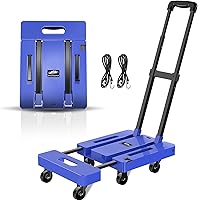 SPACEKEEPER - Carro de mano plegable, carrito de equipaje de 500 libras de capacidad, carrito plegable portátil con 6 ruedas y 2 cuerdas elásticas
