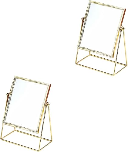 Package Include 2 x makeup mirror Characteristics - Material: Glass+ copper desk mirror decor. - Color: Golden cosmetic mirror. - Size: About 23 x 16.5 x 10 cm. / 9.05 x 6.49 x 3.93 inch. - Premium glass with just large mirror area presents a clear reflection without distortion stylish mirror. - Made of material, durable and safe to use makeup mirror. - mirror make you enjoy makeup totally desktop mirror. - Perfect gift for your friends and families. - Creative flower lace design, this mirror looks so beautiful.Goods Informationbedroom mirror The makeup mirror is made from material, which has a nice looking and resistance to scratch.cosmetic mirror The simple but chic design makes it decorative and exquisite.desktop mirror This elegant mirror is suitable for your bedroom and bathroom tabletop for your daily use