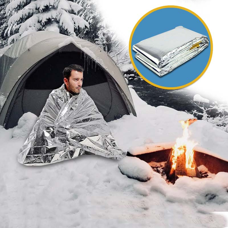 Material diseñado por la NASA llamado Mylar que es delgado, liviano, refleja la luz y mantiene hasta el 99% del calor corporal.