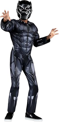 Marvel Black Panther - Disfraz oficial de Halloween para jóvenes, overol acolchado de alta calidad con máscara de plástico