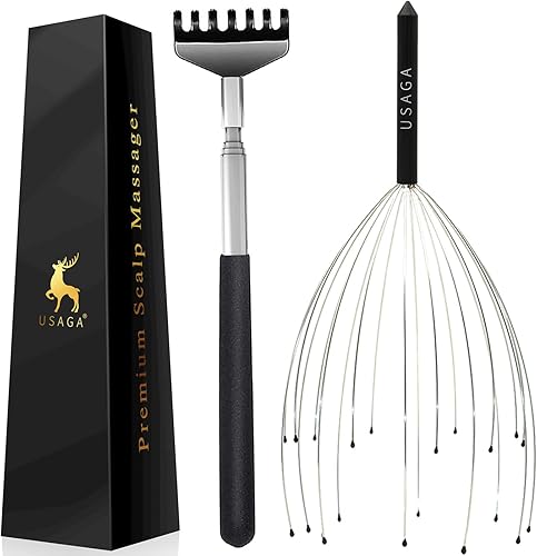 USAGA Masajeador de cabeza con 20 dedos, rascador de cuero cabelludo, rascador de cabeza, rascador de espalda extensible, relleno de calcetines para