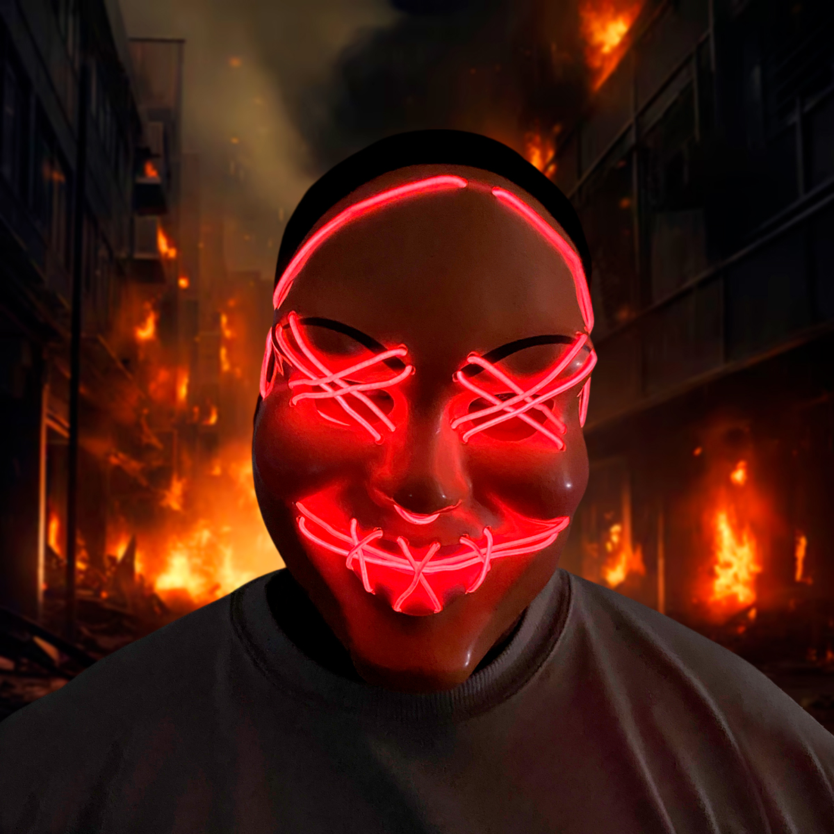 El cable LED brillante se teje en la máscara, hecha de plástico duradero, la luz no tiene daño UV, NO tiene efectos adversos en el cuerpo humano.