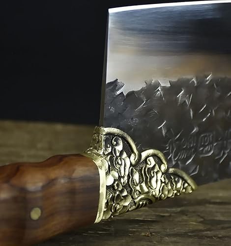 Total length of 32 cmBlade length: 20 cmHandle long: 11 cmBlade width: 9.5 cmThickness: 0.30 cmBlade material: 7Cr17MOV (7 cr 17 Molybdenum-Vanadium steel)Hardness: 59 HRCHandle material: acid branch woodShank fittings: brassNet weight: 0.46 kgThe edge is sharp and easy to polish, the blade does not rust, easily eviscerate, the kitchen or sell meat professional good helperOwn It! This high quality meat cleaver will accompany you for a great time in the kitchen!