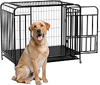 Jaula resistente de 42 pulgadas con ruedas, perrera de acero indestructible con doble puerta, diseño a prueba de fugas para perros grandes, para uso