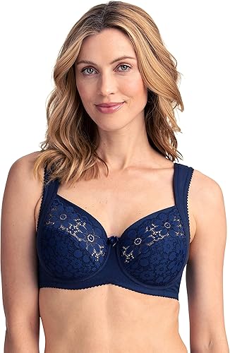 Brasier con aros y encaje hecho de material reciclado. Proporciona apoyo adicional y le da al busto una forma redonda. Forro de algodón rígido en las copas para mayor estabilidad. El lado acolchado apoya el centro del busto para un ajuste óptimo. Parte delantera de algodón. El borde inferior elevado en la parte delantera del brasier proporciona una mayor comodidad en una posición sentada y evita que la correa se pliegue. El corte también permite que el alambre se acerque al cuerpo para proporcionar un apoyo óptimo y separar el busto. Correas acolchadas y ajustables para los hombros que descargan los hombros. Parte trasera elástica en forma de U en algodón/elastano con cierre de gancho y ojal ajustable.
