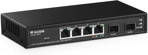Puertos 2.5G: El conmutador de red tiene 4 puertos Ethernet de 2.5Gigabit, compatible con el estándar IEEE802.3bz (2.5G), compatible con 10/100/1000M/2.5G adaptativo. 2 puertos SFP 10G (módulo compatible 1G/2.5G, no incluye módulo SFP). 60 Gbps de ancho de banda en el plano trasero, excelente rendimiento de reenvío de datos Administrado por GUI web: Soporta consulta de estado del dispositivo/puerto y varias configuraciones L2: como VLAN, QoS, seguridad, multidifusión, tabla de direcciones MAC, diagnóstico, Agregación estática, etc. Más potente que un switch no administrado Metal sin ventilador: Con carcasa de metal duradera, el diseño sin ventilador reduce el consumo de energía, operación silenciosa sin ruido y estable Fácil de mantener: Luz indicadora LED de potencia y puerto, muestra claramente el estado de funcionamiento y la tasa de puerto, la instalación y el mantenimiento son muy simples Ampliamente utilizado: Tamaño mini pequeño, diseño de montaje en escritorio/pared, bien adecuado para varios entornos, como entretenimiento en el hogar y oficina, video 4K, PC de juegos, NAS, adaptador PCIe, servidor, WiFi 6 AP y más.