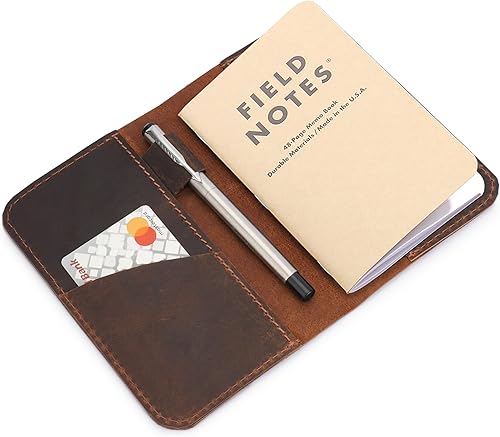 Calidad prémium: esta funda de cuero para cuaderno está completamente hecha a mano con cuero genuino de grano superior y cosida a mano con hilo de cera para mantener la elegancia atemporal. Ajuste perfecto: esta funda de cuero para portátil está diseñada para ser compatible con el cuaderno Moleskine de tapa dura de tamaño grande de 5 x 8.25 pulgadas, u otros cuadernos de tamaño más pequeño. Multiusos: esta funda de cuero para cuaderno cuenta con un diseño todo en uno. Tiene dos ranuras para tarjetas y un bolsillo en el lado izquierdo para tus facturas, notas, billetes, páginas sueltas y papeles, y el bolsillo lateral derecho es para tu cuaderno Moleskine de tamaño grande de 5 x 8.25 pulgadas. Diseño seguro: la funda de diario hecha a mano también cuenta con un diseño cómodo y seguro. Tiene una ranura en el lado derecho para atravesar la banda elástica del cuaderno para mantener el cuaderno cerrado, un soporte para bolígrafo para fijar tu bolígrafo a la cubierta del cuaderno y un botón a presión para cerrar tu funda de cuero firmemente y mantener tus artículos esenciales privados y seguros. Ligero y elegante: su diseño ligero hace que esta funda de cuero para bloc de notas sea cómoda de llevar y profundamente apreciada por hombres y mujeres. Regalo perfecto: construido para durar toda la vida, es un regalo perfecto para aniversario, cumpleaños o graduación, o para alguien que ama escribir, leer, periodistas y viajeros por igual.