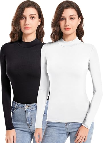 MRIGNT Paquete de 2 camisetas de manga larga con cuello alto para mujer