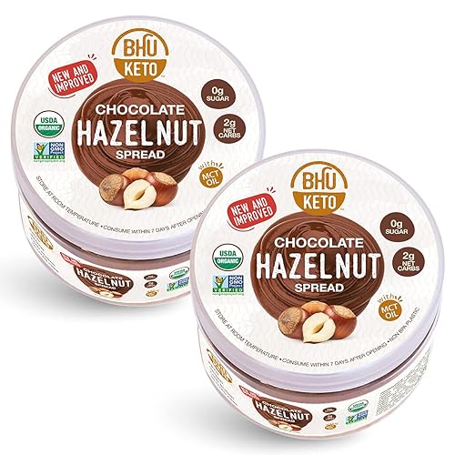 BHU Keto - Crema de chocolate y avellana 000oz de azúcar 007oz de carbohidratos netos Siempre vegano orgánico sin lácteos y sin OMG tarro de 9