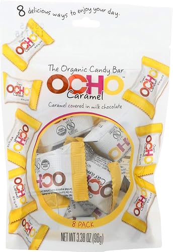 Mini barras de caramelo orgánico: paquete de 3 barras de chocolate con leche sin gluten y sin OMG con sabor a caramelo Tamaño mini: cada barra es de 3.5 onzas para un aperitivo cómodo Marca: OCHO Candy crea deliciosas barras de chocolate orgánicas Embalaje de la bolsa: Viene en una bolsa resellable de 10.5 onzas para la frescura Gran regalo: perfecto para cumpleaños, vacaciones o cualquier ocasión especial