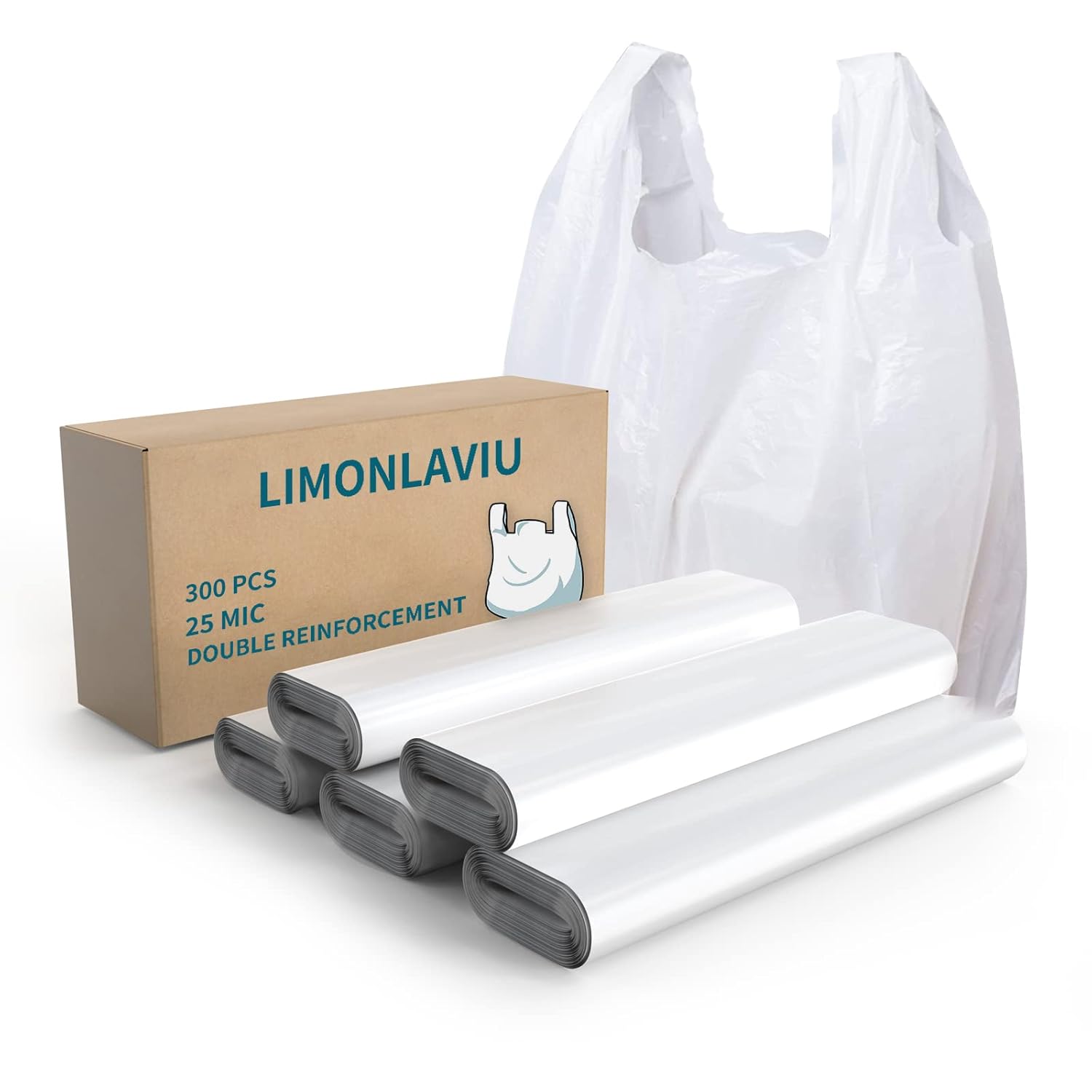 Bolsas de plástico LimonLaviu - paquete de 300 (espesor de 25 micras) (11.5' x 6.5' x 21') con asas - Bolsas al por mayor para pequeñas empresas y