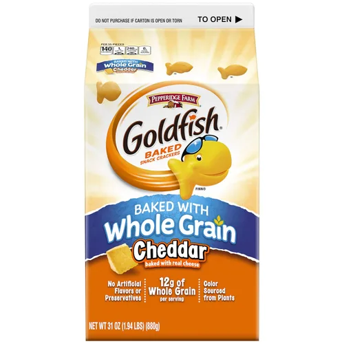 ¿Para qué sirve Pepperidge Farm Goldfish - Galletas horneadas con queso cheddar de grano entero, 31 onzas, paquete de 6?