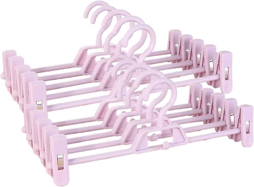 ¿Para qué sirve Perchas para pantalones con clips, 10 perchas de plástico para faldas y pantalones, perchas para ropa con clips giratorios y ajustables de 360°?