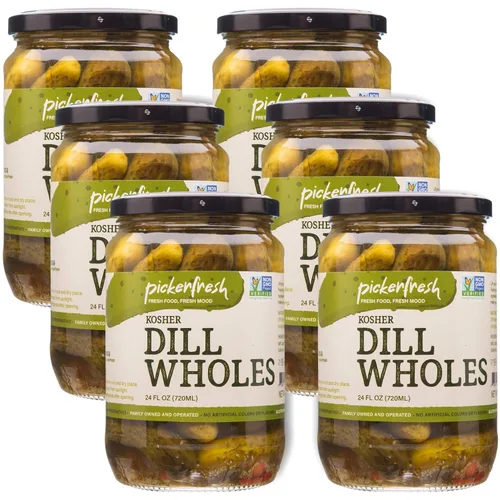 KOSHER DILL WHOLES: los pepinillos Pickerfresh están hechos con pepinos extraordinariamente frescos y la mezcla ideal de especias. Disfruta directamente del frasco para experimentar la diferencia Pickerfresh Fresh Food, Fresh Mood. Delicioso sabor fresco: mezcla de ajo, eneldo y pimiento rojo para un acompañamiento crujiente y sabroso, aperitivo o aperitivo. Córtalos en rodajas y añade un poco de sabor picante extra a tus hamburguesas, sándwiches y mucho más DESTRACTADOS EN EL PICO DE LA FRESCURA: Nos enorgullecemos de nuestros procesos patentados y líneas de producción patentadas que garantizan que nuestros productos se utilicen lo antes posible después de su recolección. Dependiendo de la ubicación de la granja, nuestros productos se recogen y se envasan en 8 a 18 horas, una verdadera victoria en nuestra industria. PROPIEDAD Y OPERACIÓN FAMILIAR: Nos asociamos con más de 4.000 agricultores en Turquía, donde el clima es ideal para cultivar algunos de los mejores productos mediterráneos del mundo. INGREDIENTES: Pepino, Agua, Vinagre, Sal, Cloruro de Calcio, Eneldo, Ajo, Pimiento Rojo, Saborizantes. Pasteurizado. Sin OMG, Kosher, sin gluten, sin maíz, sin lácteos, sin nueces, sin color artificial y sin conservantes.
