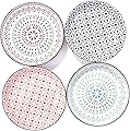 Juego de 4 platos de cerámica japonesa de 8 pulgadas con diseños surtidos únicos, platos decorativos para servir ensalada de porcelana de primera