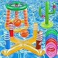 Juego de 8 anillos inflables, aro de baloncesto inflable, juego de lanzamiento de cactus, juego de lanzamiento cruzado y 2 pelotas de baloncesto