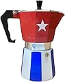 PRK 14 Cafetera cubana Greca Pot de aluminio con diseño de bandera de Cuba | Cafetera de café tradicional para café cubano auténtico, 6 tazas