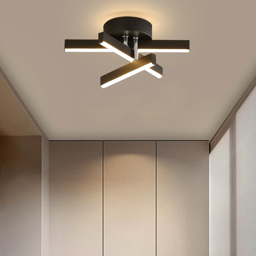 AGV LIGHTING Lámpara de techo semiempotrada, 3 luces, montaje en techo, acabado negro y dorado