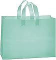 SSWBasics Large Plastic Gift Bags with Handles, Aqua Frosted, Shopping Bags, 16 x 6" x 12", Case of 100, Gift Bags Plastic, Large Plastic Bags with