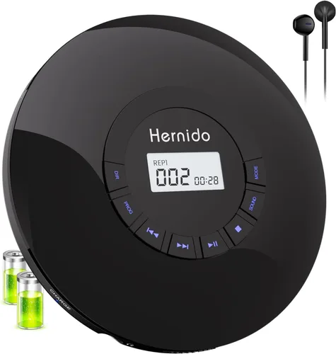 Reproductor de CD recargable: reproductor de CD Hernido portátil integrado con batería recargable de 2000 mAh, cable de carga USB plug and play. Compatible con discos CD/CD-R estándar, discos CD MP3 y discos HDCD. Su colección de CD y audiolibros agotados grabados en CD se puede reproducir a través de este reproductor. 【5 tipos de sonidos de ecualización】Interruptor de una tecla entre 5 tipos de sonidos de ecualización: BBS, POP, JAZZ, ROCK, CLASSIC, diferentes pistas con diferentes efectos de sonido, este reproductor de CD te permite disfrutar de música de alta calidad de forma inmersiva. Fácil de usar: saltar/buscar hacia adelante y hacia atrás, repetir 1 o todo - Introducción y reproducción aleatoria, memoria programable. Protección antideslizante: equipado con 60 segundos para CD y 120 segundos para MP3 en protección anti-saltos, ya sea que estés conduciendo o practicando deportes, puedes disfrutar escuchando tus CD favoritos con los reproductores de CD portátiles Hernido y nunca tendrás que perderte el ritmo. Salida auxiliar y auriculares: auriculares estéreo incluidos para una escucha agradable, ofreciendo un sonido de gran calidad tan pronto como lo conectes en el conector de auriculares de 0.138 in. Conéctese a través del cable auxiliar de 0.138 in suministrado al sistema de altavoces de su automóvil o altavoces externos, para llenar su automóvil o su hogar con sus sonidos de CD favoritos. Ligero y fácil de usar: diseño compacto de alta calidad y fácil de transportar o almacenar, por lo que es un gran regalo que tanto a padres como a niños les encantará. Todos los productos Hernido ofrecen 18 meses de garantía, cualquier pregunta sobre el jugador, no dudes en ponerte en contacto con nosotros, te ofreceremos 24 horas de servicio uno a uno.