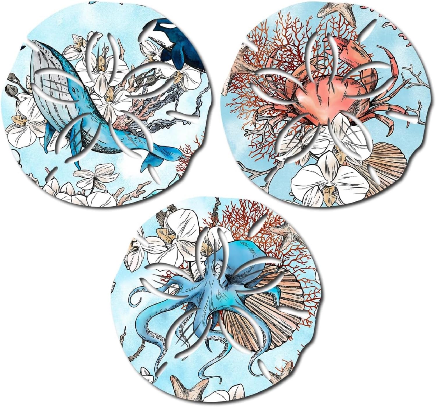 Brevoscht 3 unidades de decoración de pared de dólares de arena, decoración de pared de verano, decoración de pared de madera con diseño de océano,