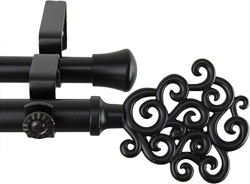 Rod Desyne 100-68-992-D Barra de cortina doble de 1 pulgada, color rosa, 120-170 pulgadas, negro