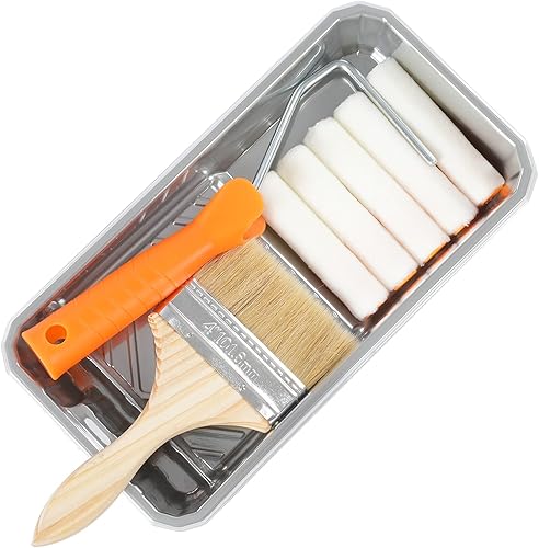 Voomey Rodillo de pintura de espuma, kit de cubierta de espuma de 4 pulgadas, rodillos de pintura pequeños con bandeja y marco de rodillo para