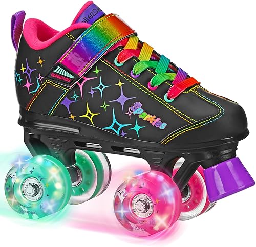 Sowume Patines en línea ajustables para niñas y mujeres, todas las 8 ruedas de los patines de niña brillan, iluminación segura y divertida para niños