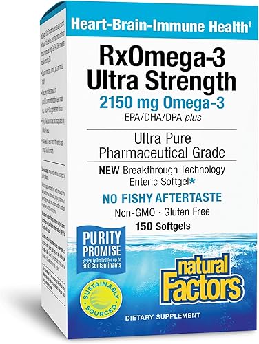 Natural Factors RxOmega-3 Ultra Strength 2150 mg - Aceite de pescado con ácidos grasos omega-3 - Apoyo para la salud del cerebro y el corazón -