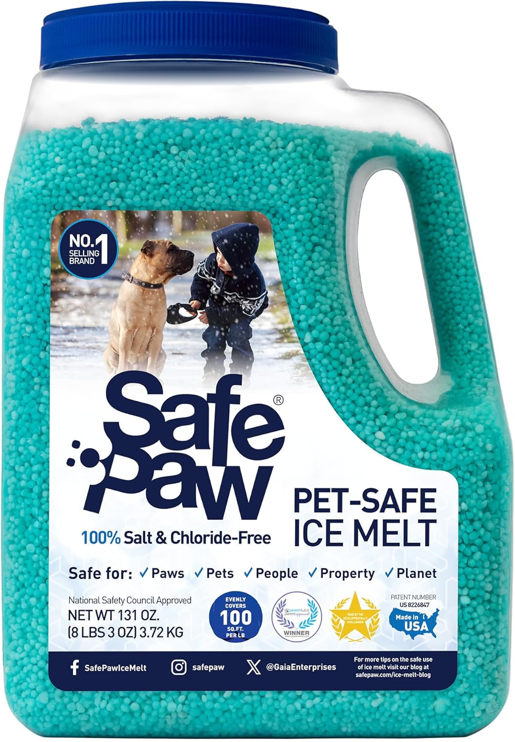 Safe Paw, derretidor de hielo seguro para perrosniñosplantas con agente de tracción, 8 libras, 100% libre de sal y cloruro, no tóxico, sin daños al