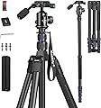 Manbily - Trípode de viaje de aluminio de 74 pulgadas para cámara DSLR teléfono, cabeza de bola de 360° con mango y placa QR extra de 1/4 pulgadas,