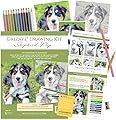 Grizaye Kit de dibujo: Pastor | Preimpreso en papel artístico, con un juego de 12 lápices de colores, fotos, guía paso a paso y color para la
