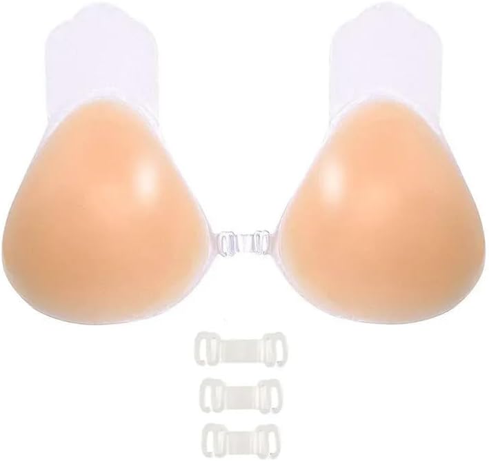 100% silicona de alta calidad Cierre de Cierre de hebilla y sin correas Solo Lavado a Mano TAMAÑOS: TALLA MEDIANA: Copas A-B y TAMAÑO GRANDE: Copas C-D. Sujetador push-up adhesivo de grado médico: experimenta el máximo apoyo y comodidad con nuestro sujetador adhesivo. Hecho de material 100% de silicona y con un bio-gel saludable, este brasier proporciona un soporte súper pegajoso para tus senos. Es seguro, suave, transpirable y cómodo de llevar, por lo que es adecuado para pieles sensibles. La buena adherencia del brasier lo asegura en su lugar, formando las curvas de tu pecho y manteniéndolas apoyadas y alegres. Sujetador push-up sin espalda: experimenta el máximo apoyo y levantamiento de senos con nuestro brasier push up sin tirantes. Con brasier push-up invisible sin tirantes, te dará un aspecto seguro debajo de cualquier atuendo. Este brasier con correa trasera transparente viene como un brasier autoadhesivo reutilizable. El brasier adhesivo para novia es la ropa interior perfecta para el vestido sin espalda de la novia, proporcionando apoyo y cobertura sin tirantes visibles. Fácil de limpiar: limpiar nuestro sujetador adhesivo es muy fácil y también es reutilizable. Todo lo que necesita hacer es limpiar la superficie adhesiva con agua tibia o detergente suave y dejar que se seque al aire. Los geles adhesivos seguirán siendo efectivos para su próximo uso. Ten en cuenta que este brasier adhesivo no es lavable a máquina y solo debe lavarse a mano. Para todas las ocasiones: nuestro sujetador de silicona es la elección perfecta para cualquier ocasión. Está diseñado para simular el tacto humano, proporcionando comodidad y apoyo inmejorables. A diferencia de otros brasieres con tirantes que se deslizan fácilmente e irritan la piel, nuestro brasier se mantiene en su lugar, por lo que puedes concentrarte en tu día. Ya sea que estés vistiendo para una noche formal, usando un atuendo sin espalda o corte bajo, o corte en V, nuestro brasier es el compañero perfecto. Incluso se puede llevar durante el gimnasio, deportes de yoga para mayor apoyo.